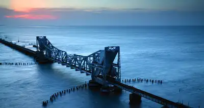 ராமேஷ்வரம் கடலில் கப்பல்கள் வரும்போது இந்த பாலம் கப்பலுக்கு வழிவிடும் .